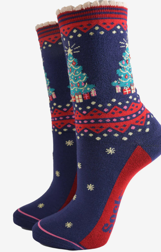 Why not make them a soft bamboo pair, navy and red with traditional style Christmas tree design 🎄